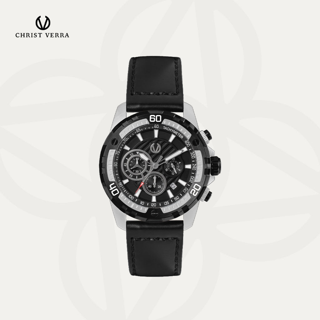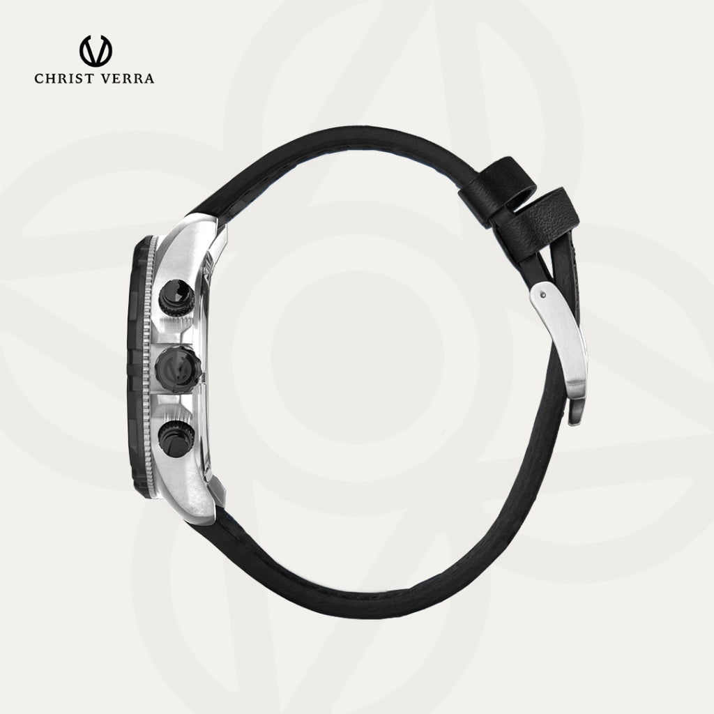 Christ Verra Casual Men's Watch Streetline Time Series Leather Strap CV 12327G-20 BLK FREE RUBBER SILICON STRAP