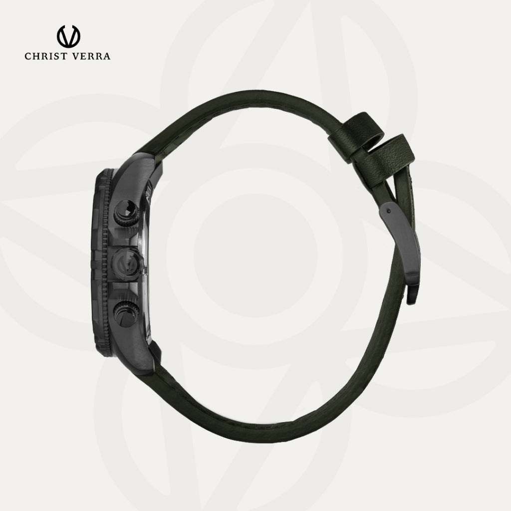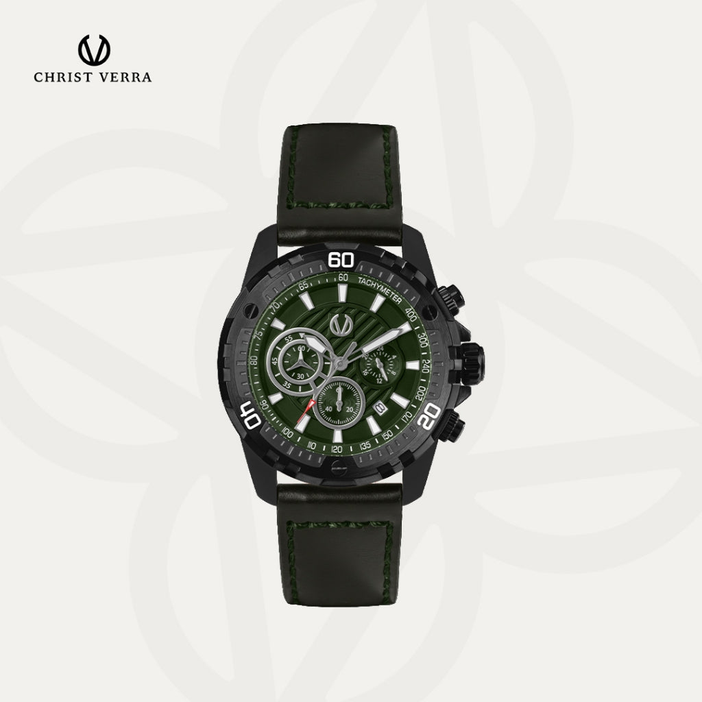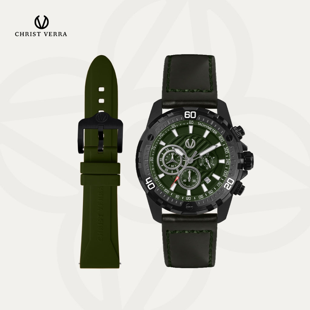 Christ Verra Casual Men's Watch Streetline Time Series Leather Strap CV 12327G-26 GRN FREE RUBBER SILICON STRAP